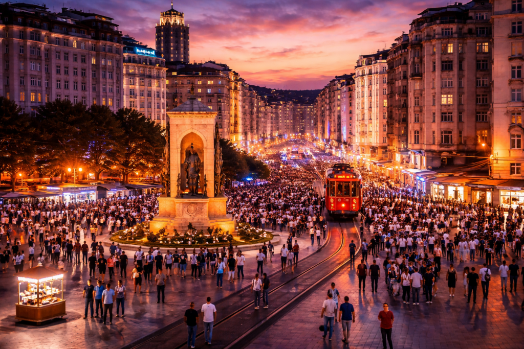 Taksim Square is a cultural and social meeting point where locals and visitors gather throughout the day. It often hosts public events, celebrations, and daily city life.